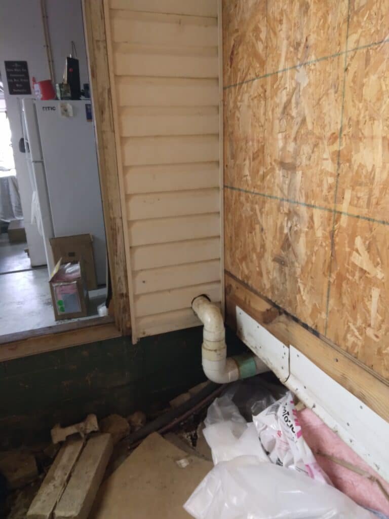Sciotoville is a charming community tucked between Portsmouth and Wheelersburg, Ohio. My client, a devoted Buckeyes fan, had already transformed his garage into an impressive sports-themed man cave featuring a full bar, video games, multiple big-screen TVs, and a pool table. Adjacent to the garage sat an 8’x10′ room with a dirt floor—the perfect candidate for a matching sports-themed bathroom where family and friends could gather on game day.