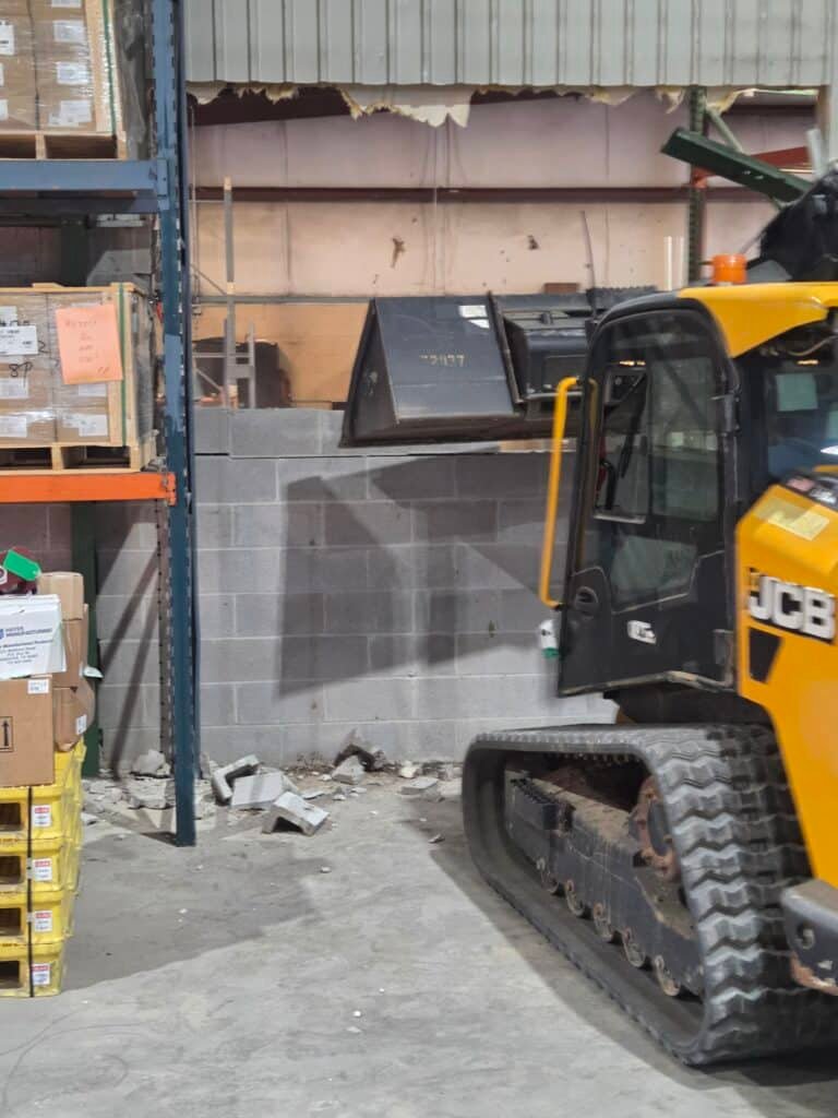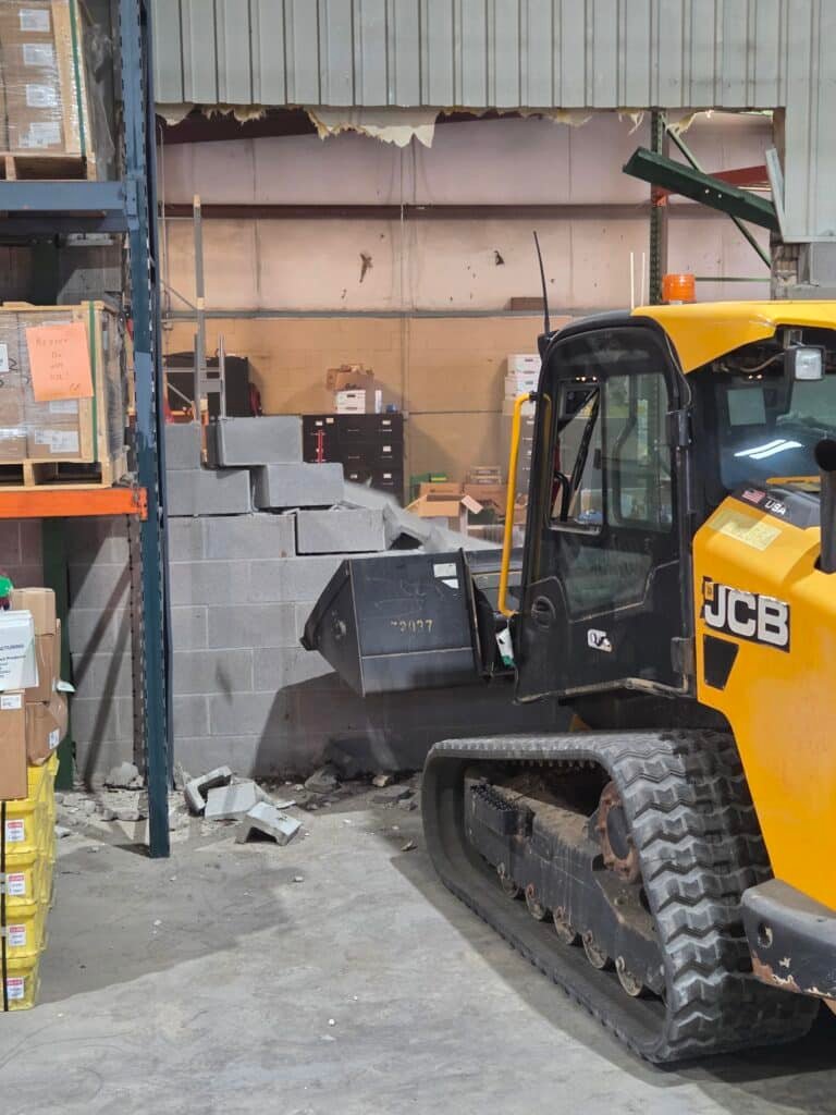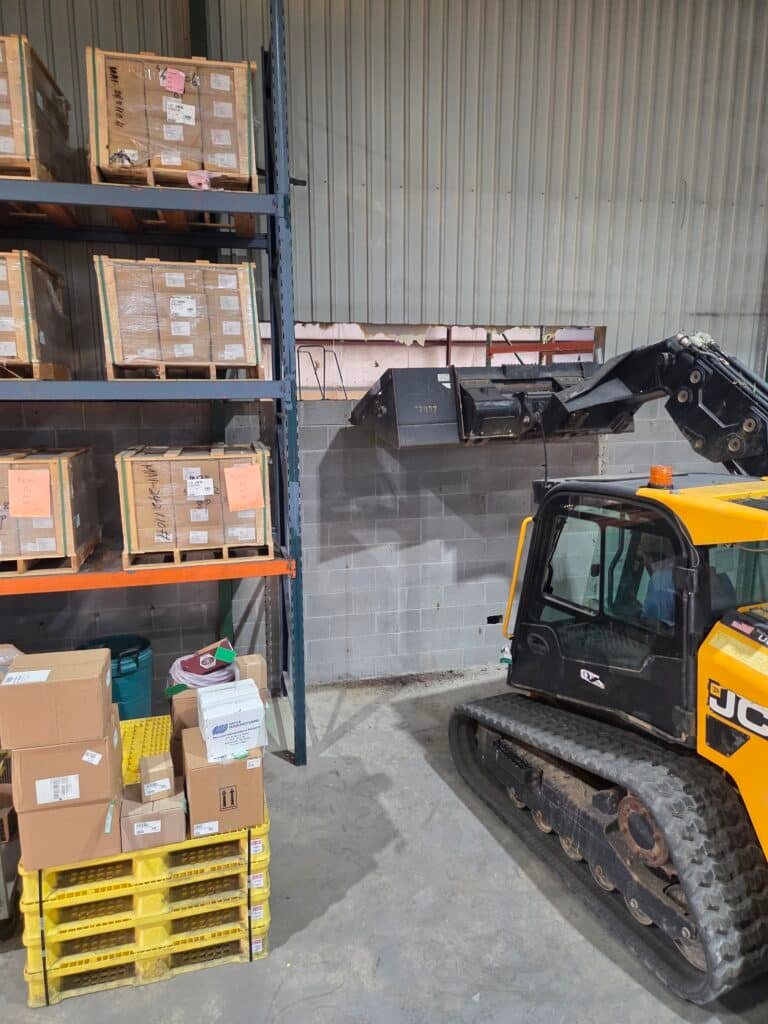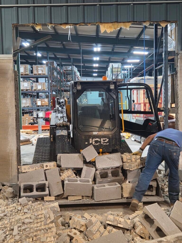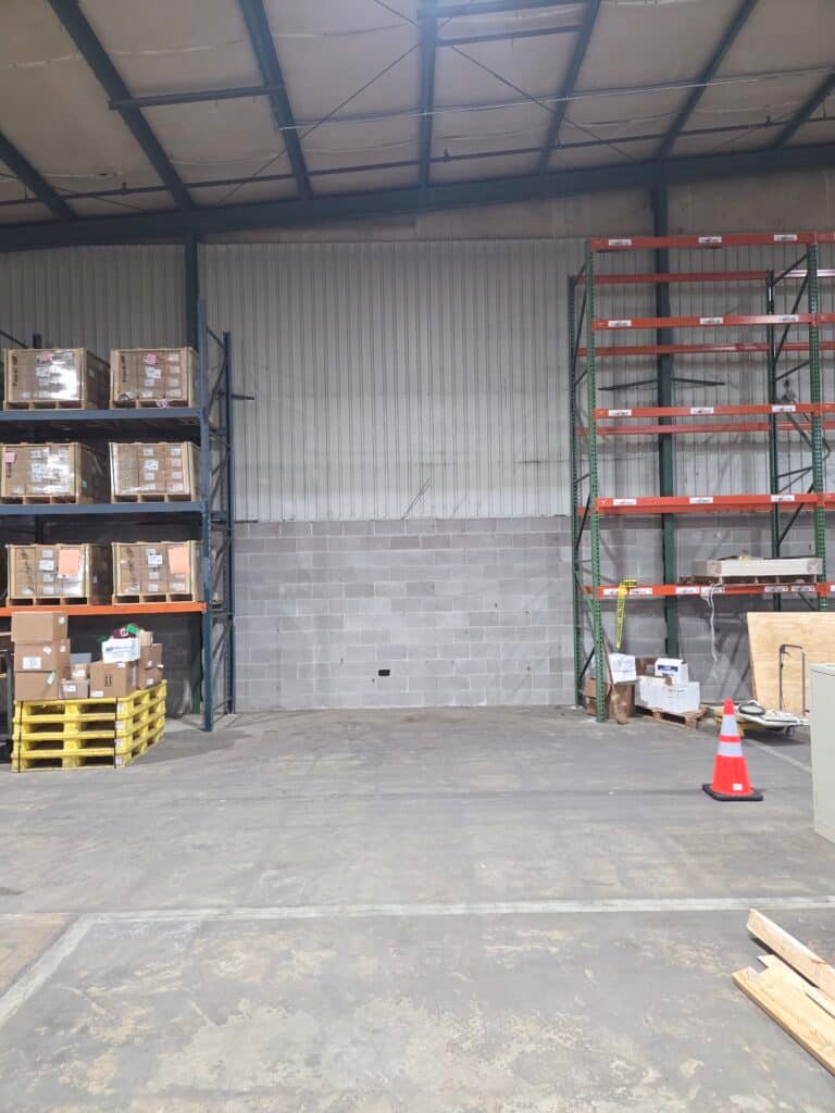 The client faced a common warehouse logistics challenge: they had materials stored in two separate sections of their facility, but no direct pathway for forklift traffic between them. The concrete block wall separating these areas was creating inefficiencies in their daily operations, forcing workers to take longer routes to move inventory.