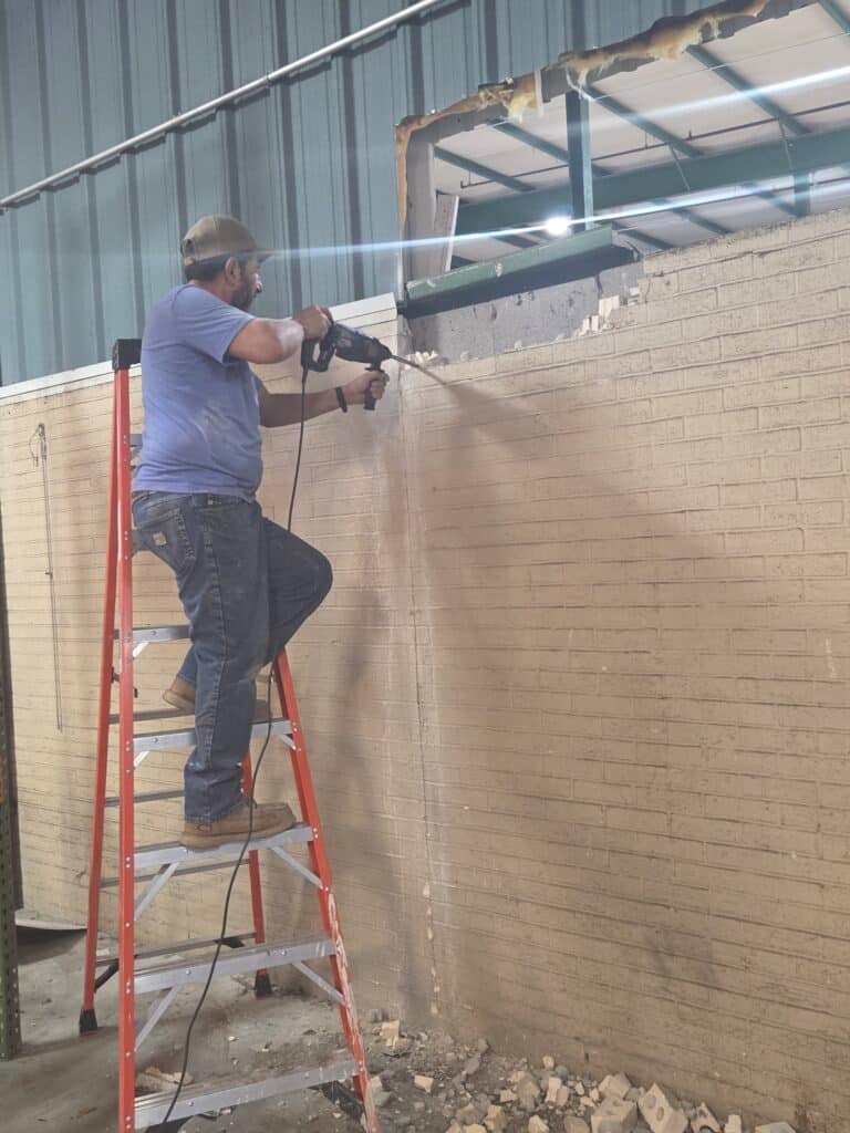This past weekend, our team at Kore Komfort Solutions completed a critical warehouse modification project in Jackson, Tennessee. While our primary area of operations is in Southern Ohio the opportunity came up to help this distribution facility improve their operations. The warehouse facility needed to improve material flow between two sections of their building, requiring us to create a new forklift access opening through an existing concrete block wall.